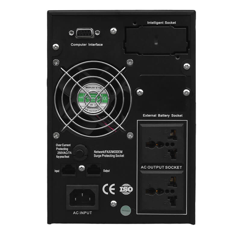 LCD or LED display System state,Load power,battery capacity,utility power mode,battery mode,bypass mode,fault indication